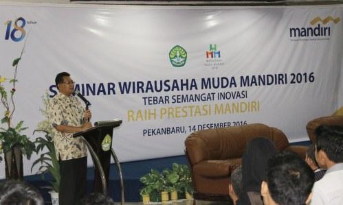 PEKANBARU -- “Kalau ingin kaya, ya korupsi, ungkap Agus Sanjaya, Area Head Bank Mandiri Wilayah Riau dalam sambutannya didepan ratusan peserta seminar usaha muda mandiri 2016, Rabu 14 Desember 2016 di aula serba guna lantai IV gedung Rektorat Universitas Riau (UR).