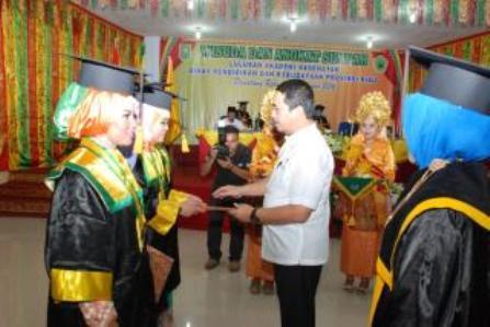 RENGAT -- Akademi Kesehatan (Akkes) Dinas Pendidikan dan Kebudayaan Provinsi Riau mewisuda dan mengambil sumpah sebagai ahli madya keperawatan terhadap 32 lulusannya Rabu 23 Nopember 2016 di Gedung Serbaguna Akkes Jalan Ahmad Tahar, Pematangreba.