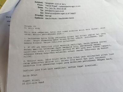 RENGAT -- Kasus dugaan Malpraktek yang terjadi di Poliklinik Perkebunan (Polibun) milik PT. Kimia Tirta Utama (KTU) yang merupakan anak dari PT. Astra Agro Lestari (AAL) sepertinya tidak main-main, pasalnya sebanyak 14 orang petinggi PT. AAL menjadi terlapor dalam kasus tersebut.