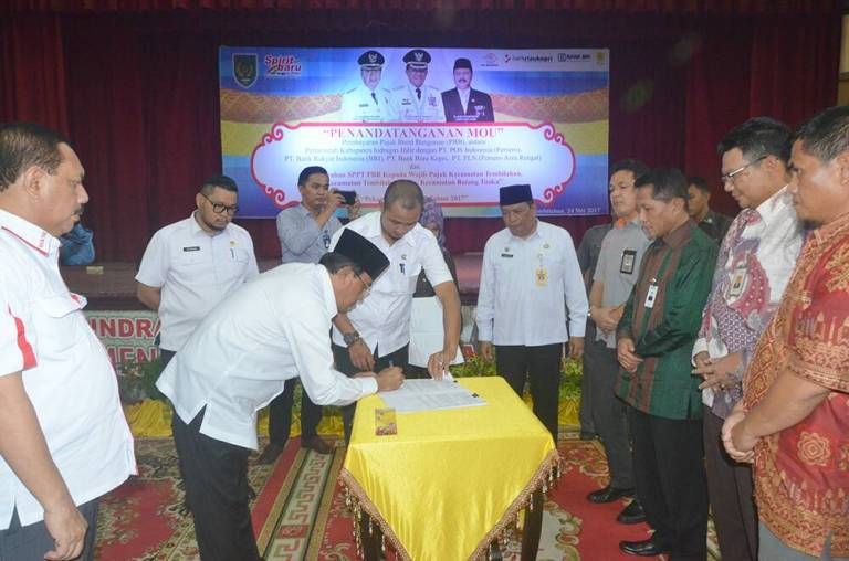 Bupati Inhil Tandatangani MoU Pembayaran PBB Dengan Sejumlah Institusi