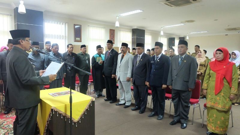 TEMBILAHAN -- Bupati Kabupaten Indragiri Hilir (Inhil), HM Wardan melantik Kepala Dinas Kependudukan dan Pencatatan Sipil (Kadisdukpencapil) Kabupaten Inhil, Ahmad Ramani di Aula Lantai V (Lima) Kantor Bupati Inhil, Jalan Akasia Nomor 1, Tembilahan, Selasa 3 Oktober 2017, kemarin siang.