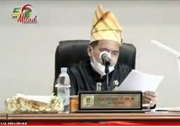 Gaungriau.com (TEMBILAHAN) -- Ketua DPRD Inhil DR H Ferryandi ST. MT. MM, pimpin rapat paripurna istimewan pada puncak perayaan hari jadi Kabupaten Indragiri Hilir ke 56 tanggal 14 Juni 2021.