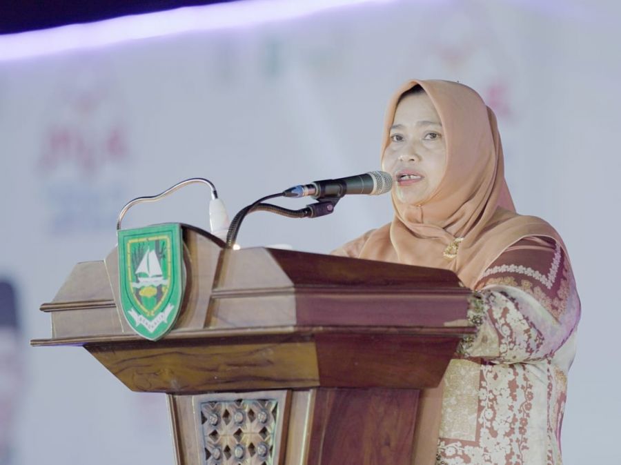 Gaungriau.com -- Diwakili diwakili Asisten Pemerintahan dan Kesra, Andris Wasono, Bupati Bengkalis Kasmarni menghadiri Malam Ta'aruf dan Pengukuhan Majelis Hakim MTQ ke-42 tingkat Provinsi Riau, di Halaman Dumaii Islamic Cienter, Sabtu malam 20 April 2024.