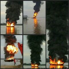 Kapal Bermuatan BBM Ludes Terbakar di Parit 4 Inhil