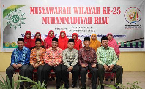 PEKANBARU -- Musyawarah Wilayah ke-25 Muhammadiyah dan Aisyiyah Riau telah usai digelar pada Ahad 29 Nopember 2015 malam dan telah menghasilkan susunan pimpinan baru. Drs Wan Abu Bakar MSi terpilih sebagai Ketua PW Muhammadiyah Riau dan Dra. Syariyah MM, sebagai ketua PW Aisyiyah periode 2015-2020.