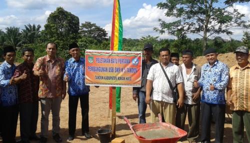 TANDUN -- Camat Tandun, Tengku Habrizal bersyukur dengan terlaksananya peletakan batu pertama pembangunan Unit Sekolah Baru (USB) SMPN 5 Tandun, Selasa 17 Mei 2016. Menurutnya, pembangunan sekolah baru tersebut sudah lama dicita-citakan masyarakat setempat.