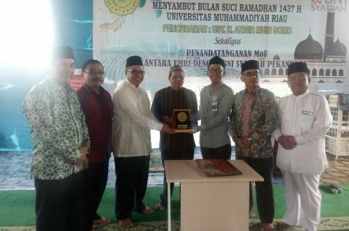 PEKANBARU -- Bertempat di Masjid Baitul Hikmah, Kampus II, Universitas Muhammadiyah Riau (UMRI) dan BNI Syariah melakukan penandatanganan kerjasama yang tertuang dalam Memorandum of Understanding (MoU). Jumat 3 Juni 2016.