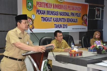 BENGKALIS -- Sekretaris Daerah (Sekda) Bengkalis, Burhanuddin mengajak seluruh elemen di Negeri Junjungan untuk menyukseskan pelaksanaan Pekan Imunisasi Nasional (PIN) POLIO pada 8-15 Maret 2016.