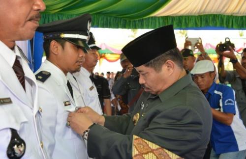 BENGKALIS -- Bertempat di halaman Kantor Kepala Desa (Kades) Batang Duku, Kecamatan Bukit Batu, Bupati Bengkalis Amril Mukminin, Senin 28 Maret 2016, melantik 4 Penjabat Kepala Desa (Pj Kades).