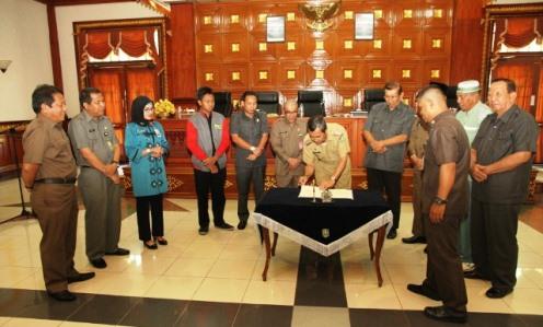 Penandantangan komitmen kepala OPD, disaksikan langsung Plt Sekda Bengkalis Arianto, Plt Inspektur Suparjo dan Pengendali Teknis BPKP Perwakilan Riau, Yanerius.