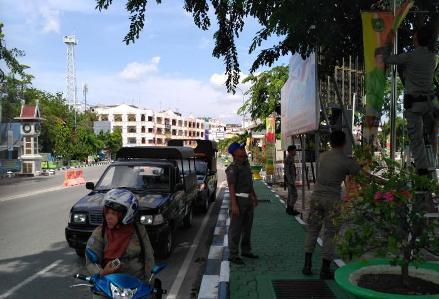 BENGKALIS -- Satuan Polisi Pamong Praja (Satpol PP) Kabupaten Bengkalis kerahkan 20 personil untuk menertibkan banyaknya Baleho yang tidak jelas dan merusak tata keindahan khususnya kota Bengkalis.