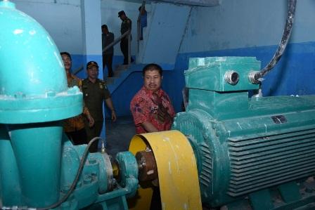 DURI -- Bupati Bengkalis Amril Mukminin kecewa saat meninjau proyek Intake Air Baku Sungai Jurong, Kecamatan Mandau, Kamis 3 Nopember 2016. Pasalnya, proyek tahun 2015 lalu, kondisinya sangat memprihatinkan, sehingga belum bisa dimanfaatkan.