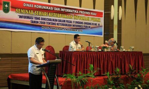 PEKANBARU -- Dinas Komunikasi dan Informatika Provinsi (Diskominfo) Riau melalui Unit Pelaksana Teknis (UPT) Komisi Informasi Publik (KIP) menggelar seminar sehari keterbukaan informasi publik di Hotel Pangeran Pekanbaru, Rabu 9 Nopember 2016.