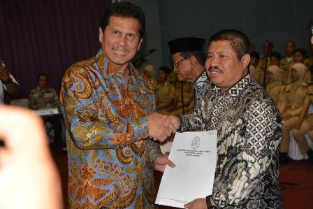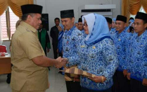 Dalam sambutannya Bustami minta kepada seluruh pejabat yang dilantik kiranya dapat melaksanakan tugas dengan baik dan penuh tanggung jawab.