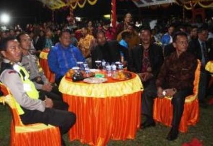 RENGAT -- Bupati Indragiri Hulu (Inhu) H Yopi Arianto hadiri perayaan natal oikumene tahun 2016 yang dipusatkan di lapangan sepakbola Sekolah Santa Theresia, Jalan Piere Tendean Airmolek kecamatan Pasir Penyu, Selasa 27 Desember 2016 malam.