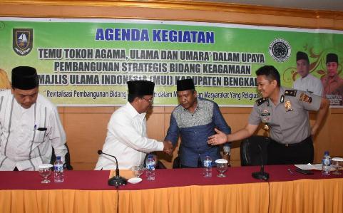 BENGKALIS -- Sebagai upaya menciptakan kerangka acuan strategis dalam mengatasi permasalahan sosial yang terjadi di tengah-tengah masyarakat saat ini, Majelis Ulama Indonesia (MUI) Kabupaten Bengkalis, menggelar temu tokoh agama, ulama dan umara’ dalam upaya pembangunan setrategis bidang keagamaan.