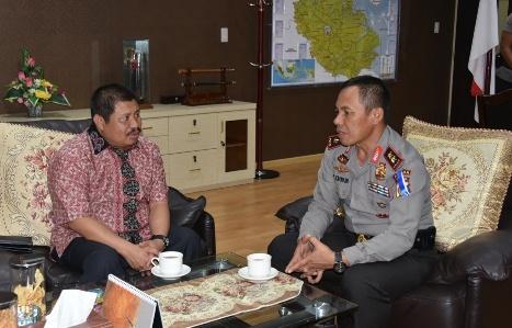 PEKANBARU -- Bupati Bengkalis Amril Mukminin, Jum’at 22 Desember 2016 mengadakan kunjungan silaturahim dengan Kepala Kepolisian Daerah (Kapolda) Riau, Inspektur  Jenderal (Irjen) Zulkarnain Adinegara. Amril diterima Kapolda Riau di ruang kerjanya, Mapolda Riau, Jalan Jnderal Sudirman Pekanbaru.
