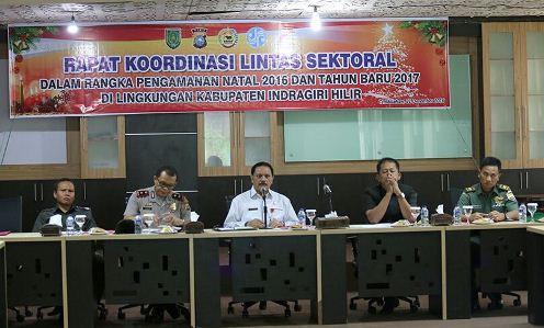TEMBILAHAN -- Rabu 21 Desember 2016 bertempat di aula Lantai 5 Kantor Bupati Inhil dilaksanakan Rapat Koordinasi Lintas Sektoral Dalam Rangka Pengamanan Natal 2016, Tahun Baru 2017 dan Bersamaan Libur Anak Sekolah..