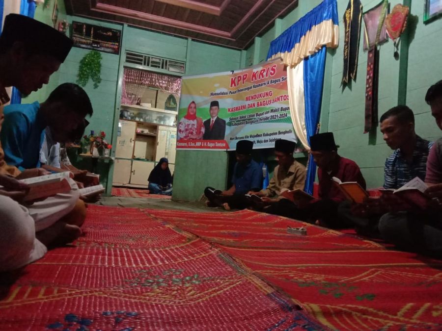 Gaungriau.com (BENGKALIS) -- Mengharapkan ridho Allah SWT dan terciptanya politik santun di negeri junjungan Bengkalis, relawan Kasmarni-Bagus yang tergabung dalam Konsolidasi Pusat Pemenangan Kasmarni Bagus Santoso (KPP KRIS) mengelar yasinan dan doa bersama, Selasa malam 1 September 2020.