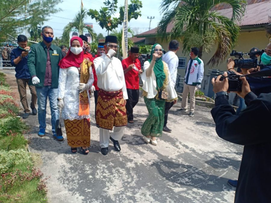 Gaungriau.com (BENGKALIS) -- Sekitar pukul 10.15 WIB bakal pasangan calon (balon) Bupati dan Wakil Bupati Bengkalis Kaderismanto-Iyet Bustami (Sri Barat) tiba di Kantor Komisi Pemilihan Umum (KPU) Kabupaten Bengkalis Jalan Pertanian, Ahad 6 September 2020.