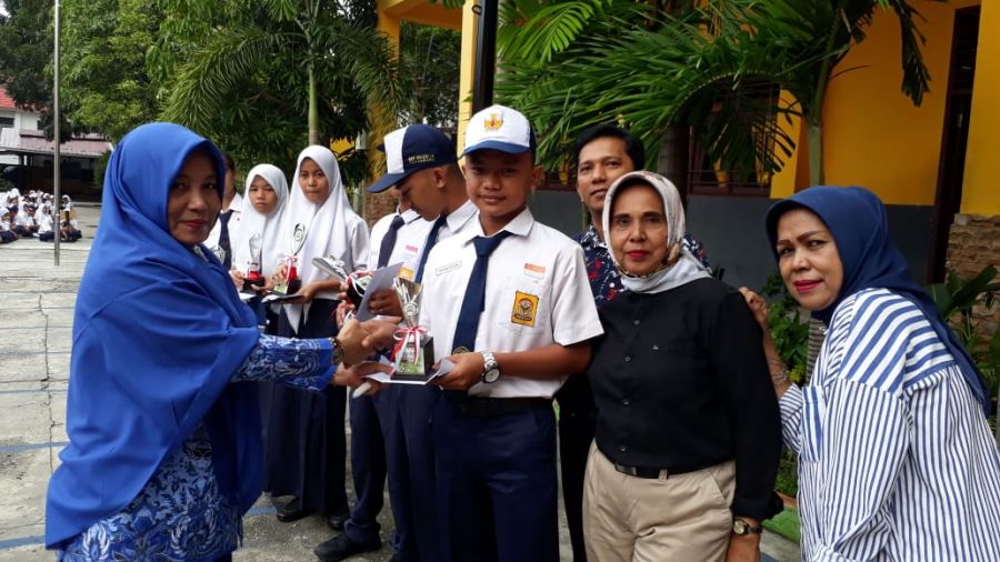 IKA SMPN 12 Pekanbaru Bagikan Piala Kepada Pemenang Voley Ball Antar Kelas