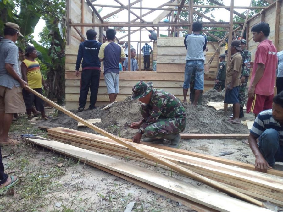 Gaungriau.com (UJUNG BATU) -- Komandan Koramil 08/Tandun Kapten Inf Saiful Arif langsung memimpin kegiatan gotong royong membantu warga binaannya dalam membangun rumah.