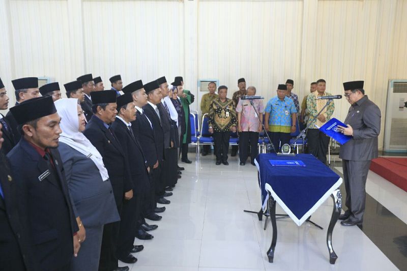 SELATPANJANG -- Gaungriau.com -- Sekretaris Daerah Kabupaten Kepulauan Meranti Yulian Norwis, SE. MM Melantik 27 Pejabat Struktural Eselon IV di Lingkungan Pemerintah kabupaten Kepulauan Meranti Tahun 2018 di Aula Pertemuan Kantor Bupati Kepulauan Meranti (Gedung Orange) khamis 1 Februari 2018 siang.