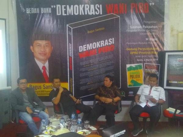 PEKANBARU -- Demokrasi Wani Piro adalah buku ketiga karya besar Bagus Santoso, anggota DPRD Riau yang menunjukkan bagaimana demokrasi berjalan di Indonesia, khususnya di Riau beberapa periode terakhir. Acara yang digelar di Perpustakaan DPRD Riau, Senin 4 Maret 2019 banyak mendapat perhatian dari kalangan akademisi dan wartawan di Riau.…