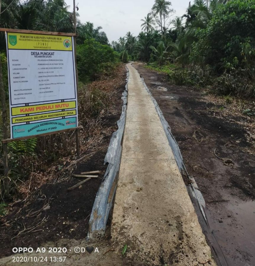 Gaungriau.com (PUNGKAT) -- Dalam rangka membuka isolasi wilayah dan memudahkan arus orang dan barang, Desa Pungkat Kecamatan Gaung telah membangun jalan desa sepanjang 2 KM yang menghubungkan desa ini dengan jalan perusahaan Bina Duta Laksana (BDL), hingga memudahkan warga untuk menuju Tembilahan.