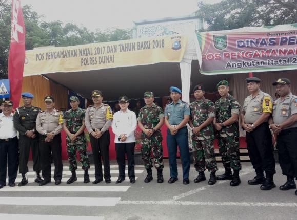 DUMAI -- Walikota Dumai, Zulkifli As bersama seluruh unsur Forkompimda Kota Dumai melakukan peninjauan ke dua Pos Pelayanan dan satu Pos Pengamanan Operasi Lilin Siak 2017, Rabu 27 Desember 2017 sekira pukul 10.00 WIB.