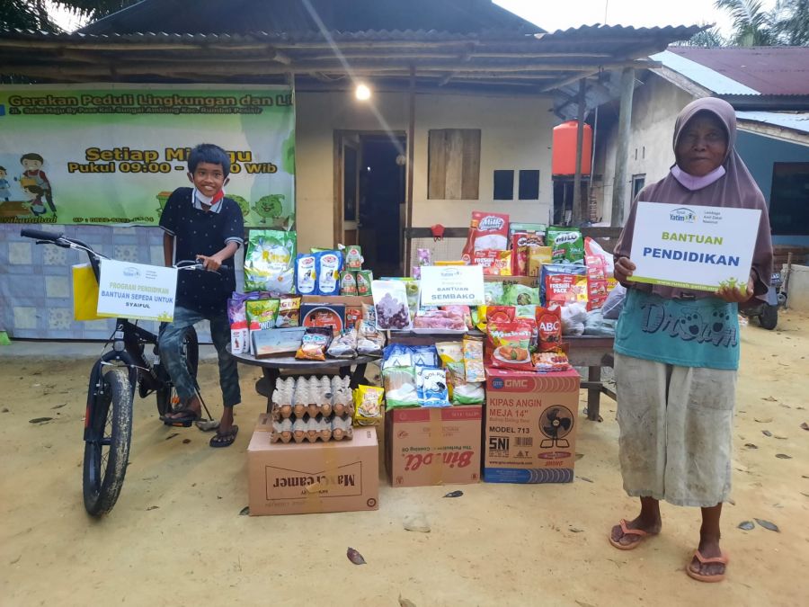 Gaungriau.com (PEKANBARU) -- Rumah Yatim Cabang Riau kembali menyalurkan bantuan pendidikan berupa program beasiswa dhuafa serta satu unit sepeda dan vitamin,buah-buahan serta bahan pokok untuk Syaiful Amri (12) pada hari Kamis 12 Agustus 2021 siang.