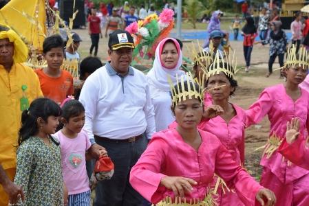 BENGKALIS -- Pj Bupati Ahmad Syah Harrofie dan isteri larut dalam tarian Gendong yang dibawakan oleh warga Suku Asli Desa Jangkang. Sepasang sejoli ini menari dan bergoyang mengikuti rentak irama bersama para penari. Tarian ini mengitari miniatur perahu layar lancang kuning. Menurut salah seorang tokoh…
