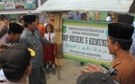 TEMBILAHAN -- Komit dalam usaha memajukan dunia pendidikan Inhil, Bupati HM Wardan pada hari yang sama menghadiri Peresmian SMP Islam Terpadu Yayasan Islamultakdiyah Desa Pancur dan meresmikan SMPN 4 Dusun Portal Desa Sekayan Kecamatan Kemuning, Jumat 13 Mei 2016.