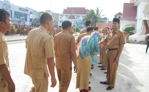 BAGANSIAPIAPI -- Momen lebaran Idul Fitri 1437 sudah lewat, namun perayaan tersebut masih terasa di lingkungan Pemerintah Rokan Hilir Senin 11 Juli 2016. Pada saat apel pagi yang dipimpin langsung oleh Bupati Rokan Hilir H Suyatno. usai…