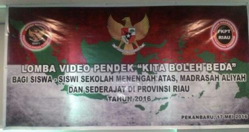 PEKANBARU -- Salam Semangat, Badan Nasional Penanggulangan Terorisme (BNPT) bekerjasama dengan Forum Koordinasi Pencegahan Terorisme (FKPT) Provinsi Riau menyelenggarakan Lomba Video Pendek dengan Tema “Kita Boleh Bedaâ€. Lomba ini dilangsungkan, Selasa 17 Mei 2016  di Alpha Hotel Jalan  Imam Munandar,  Pekanbaru, Riau.