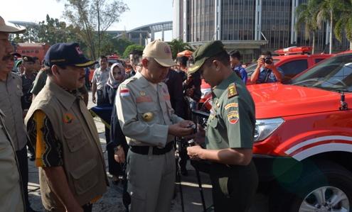 PEKANBARU -- Pemerintah Provinsi (Pemprov) Riau menggelar apel siaga darurat bencana asap akibat Kebakaran hutan dan Lahan (Karhutla) di halaman kantor Gubernur Riau, Jumat 3 Februari 2017.