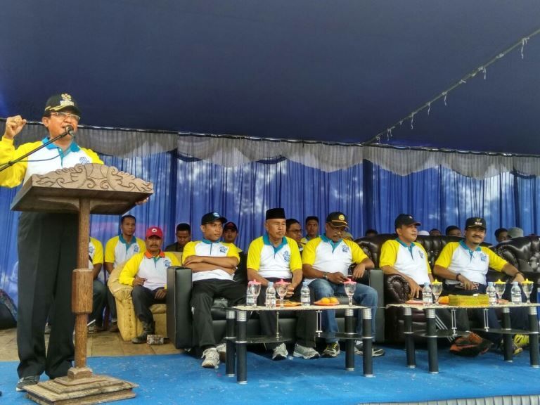 KERITANG -- Wakil Bupati Kabupaten Indragiri Hilir H.Rosman Malomo membuka Turnamen Sepakbola Desa CUP TH 2017 yang di pusatkan di lapangan bola kaki Dusun Sungai Nau Desa Teluk Kelasa Kecamatan Keritang, Senin 24 Oktober 2017.