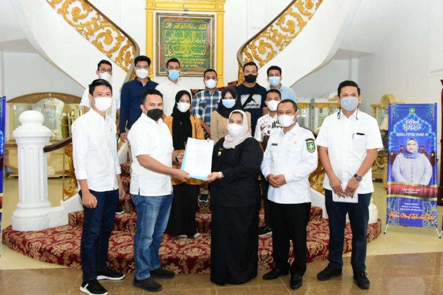 Gaungriau.com (BENGKALIS) -- Bupati Bengkalis Kasmarni menerima audensi Ketua Umum BPC HIPMI Kabupaten Bengkalis Azrul Noor dan sejumlah pengurus di Wisma Sri Mahkota Bengkalis, Rabu 7 Juli 2021.