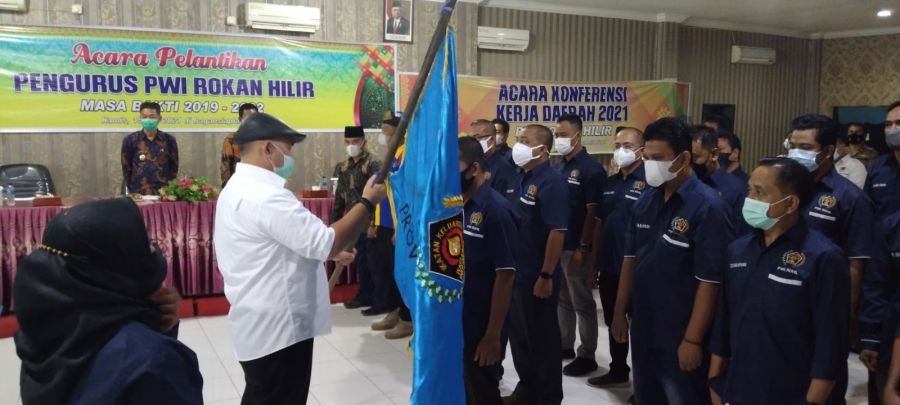 Bertempat di Aula Hotel Armarosa, Bagansiapiapi, Ketua Persatuan Wartawan Indonesia (PWI) Propinsi Riau, H Zulmansyah Sekedang melantik secara resmi pengurus PWI Rohil periode 2019-2022, Kamis 15 Juli 2021.