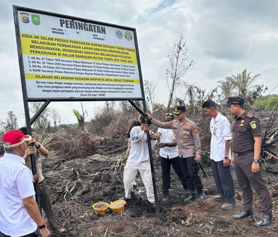 Gaungriau.com -- Dalam upaya penegakan hukum sekaligus pencegahan kebakaran hutan dan lahan (karhutla), Polres Bengkalis melakukan pemasangan plang peringatan karhutla di kawasan Hutan Produksi Terbatas (HPT) Desa Petani, Kecamatan Bathin Solapan, Rabu 1 Oktober 2025.