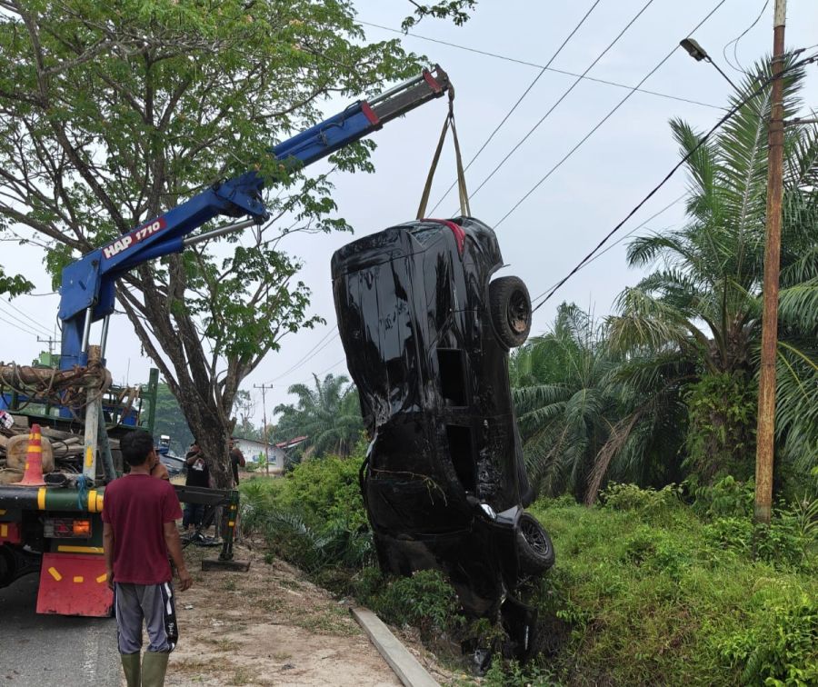 Supir Diduga Mengantuk, Kijang Innova Hantam Mobil Dinas Waka DPRD Bengkalis hingga Terbalik