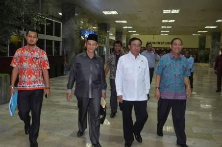 BAGANSIAPIAPI -- Ketua DPRD Rokan Hilir (Rohil) Nasrudin Hasan didampingi sekwan Syamsuri Achmad mengantarkan berkas bupati dan wakil bupati Rohil terpilih periode 2016-2021, pasangan Suyatno AMp dan Drs Jamiluddin kepada plt Gubernur Riau (Gubri) Arsyad Juliandi Rahman di Pekanbaru, Kamis 4 Februari 2016. …