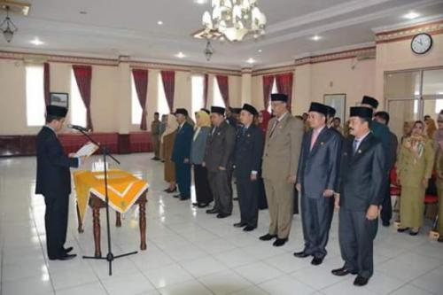 BAGANSIAPIAPI --Lima belas pejabat eselon III dan IV lingkup Pemkab Rohil dimutasi dan beberapa diantaranya menduduki jabatan strategis.Acara serahterima jabatan sekaligus pengambilan sumpah yang disaksikan Sekda Rohil H Surya Arfan, di aula Kantor Bupati Rohil, Selasa 8 September 2015.