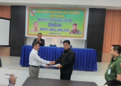 PEKANBARU -- Bertempat di aula Dinas Pendidikan Kota Pekanbaru, Senin 1 Februari 2016 siang dilaksanakan Serah Terima Jabatan (Sertijab) Jabatan Kepala Dinas Pekanbaru dari Prof Dr Zulfadil SE MBA kepada H Abdul Jamal MPd. Sertijab tersebut ikut dihadiri…