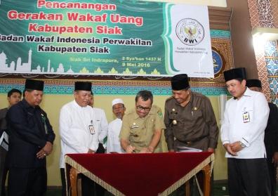 SIAK -- Bank Riau Kepri menandatangani nota kesepahaman (MoU) dengan Badan Wakaf Indonesia (BWI) Perwakilan Kabupaten Siakpada acara Pencanangan Gerakan Wakaf Uang di Kabupaten Siak sempena peringatan Isra Miraj 1437 Hijriah di Islamic Center Madinatul Ulum Sultan Syarif Hasyim, Senin 9 Mei 2016. Nota kesepahaman…