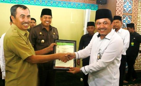 SIAK -- Ratusan Pegawai Negeri Sipil (PNS) dan masyarakat menghadiri Pencanangan Gerakan Wakaf Uang di Kabupaten Siak, yang dilaksanakan sempena Peringatan Isra Mi’raj 1437 Hijriah di Islamic Center Madinatul Ulum Sultan Syarif Hasyim, Senin 9 Mei 2016.