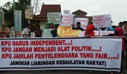 PEKANBARU -- Ratusan masa yang tergabung dalam Jaringan Kedaulatan Rakyat (Jangkar) seruduk kantor Komisi Pemilihan Umum (KPU) Kota Pekanbaru, Kamis 6 Oktober 2016. Kedatangan masa dikarenakan sikap arogansi penyalahgunaan wewenang yang diduga dilakukan KPU sehingga dianggap mengkebiri…