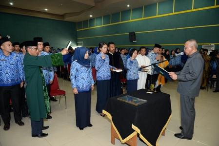 PEKANBARU -- Sebanyak 242 Calon Pegawai Negeri Sipil (CPNS) dilingkungan Pemerintah Provinsi (Pemprov) Riau diambil sumpah dan janji jabatan, yang menandakan resmi diangkat menjadi Pegawai Negeri Sipil (PNS) sepenuhnya dilingkungan Pemerintah Provinsi Riau. Dimana dalam Peraturan Pemerintah (PP) nomor 21 tahun 75, menyampaikan bahwa calon…