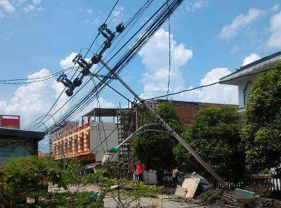 Diduga Akibat Pengerjaan Drainase, Tiang Listrik Tumbang