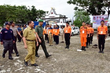 TEMBILAHAN -- Sekretaris Daerah Kabupaten Indragiri Hilir (Inhil) Said Syarifuddin memimpin Apel Akbar dan Gladi Penanggulangan bencana Kebakaran Lahan dan Hutan (Karlahut), Senin 20 Maret 2017.